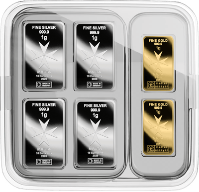 One glance at the elegant masterbox immediately reveals: there's a system behind this. Four silver and two gold minted bars rest neatly side by side – each one stamped with the iconic Maltese cross, the emblem of Malta. The silver minted bars carry a face value of 15 euro cents, while the gold minted bars carry a face value of 3 euros. But what does this mean in practice?
